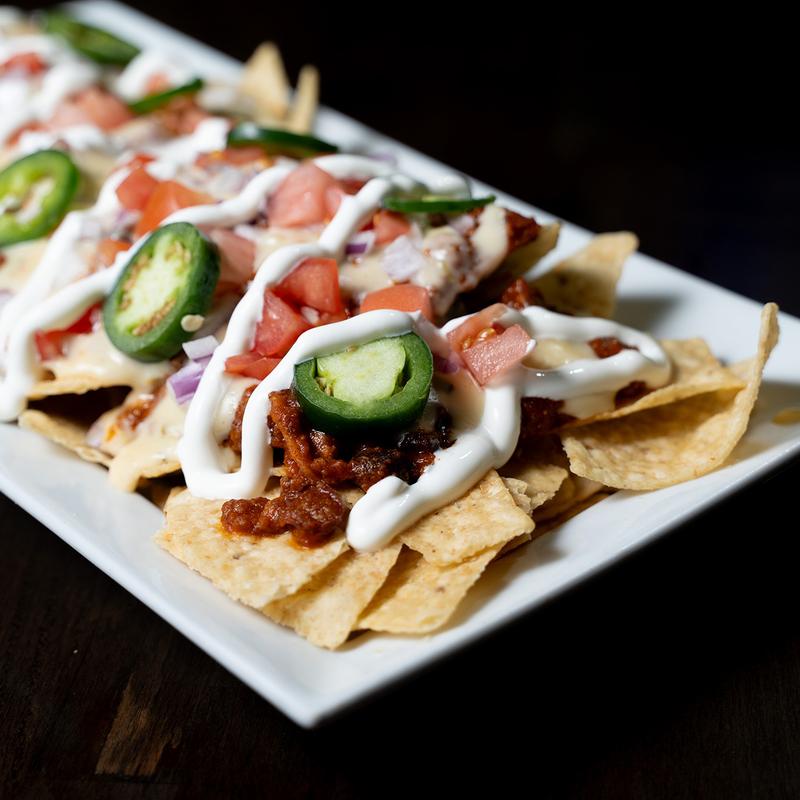 Crispy corn tortilla chips with chili, queso, sour cream, tomato, onions & jalapeno.